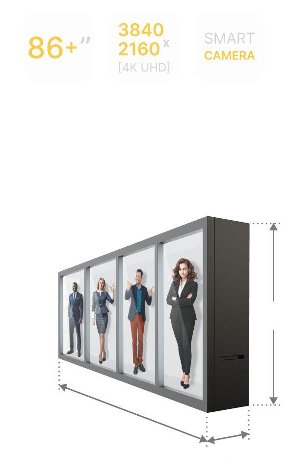 An ultra-wide holographic wall made of multiple tiled 4K displays, designed to render expansive AI Holograms. Best suited for dynamic performances, high-traffic entrances, and multi-avatar showcases.